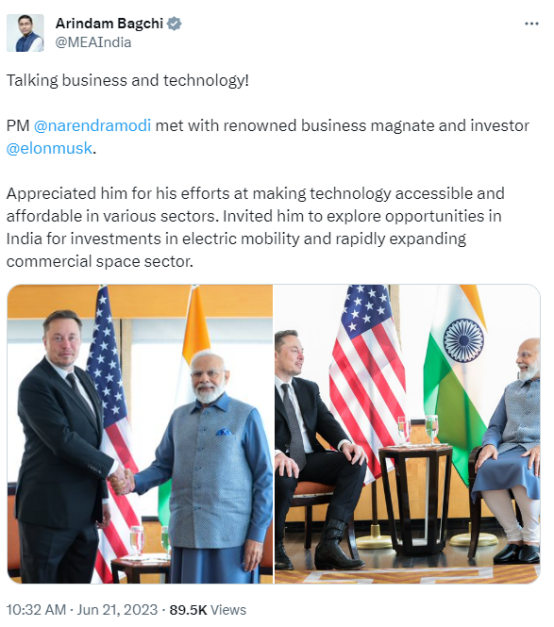 算作企业界代表,马斯克相通对莫迪给出了积极的反映。