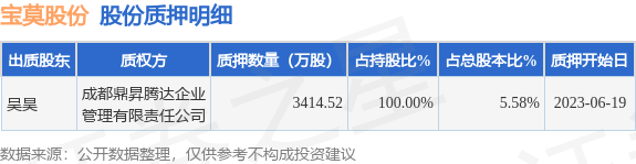 宝莫股份(002476)6月20日公开信息泄露皇冠体育直播,推进吴昊向成齐鼎昇鼎盛企业措置有限包袱公司总共质押3414.52万股,占总股本5.58%。质押笃定见下表: